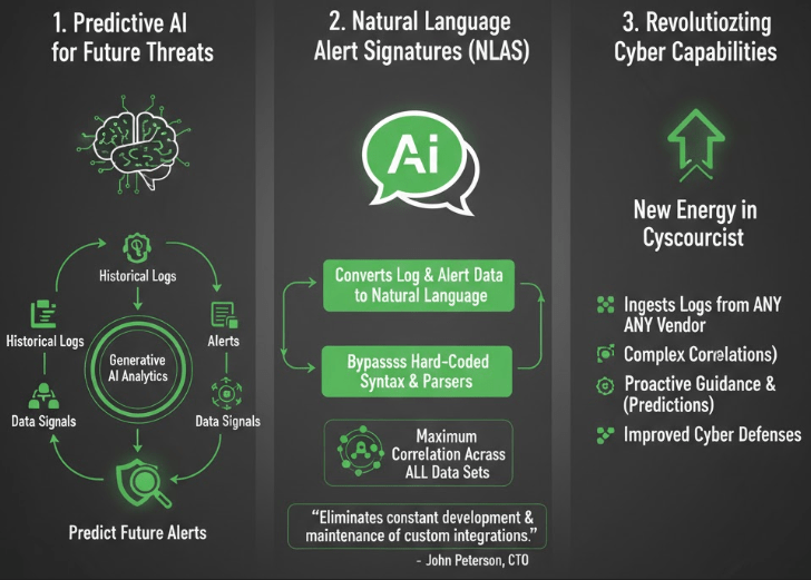PRE Security has filed several foundational patents to date that deal with using generative AI systems to predict future alerts based on data analytics performed on historical logs, alerts, and other data signals, as well as around the use of LLMs to develop what PRE Security calls Natural Language Alert Signatures, which are designed to help achieve maximum correlation across all data sets available, not just those with custom integrations.